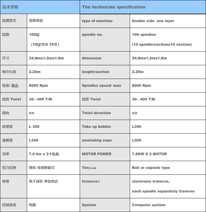 主要适合1000D 以上粗纱加捻,用于工业缝纫线,轮胎帘子线,箱包线,传动带 粘合线等